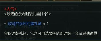 【峡湾的余烬时装礼盒1个】包含可自选颜色新时装 +17+19强化石等极品道具