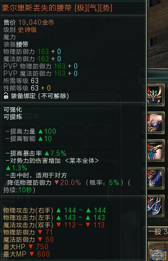 【豪尔里斯丢失的腰带】免洗极品暴击减物防腰带