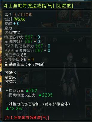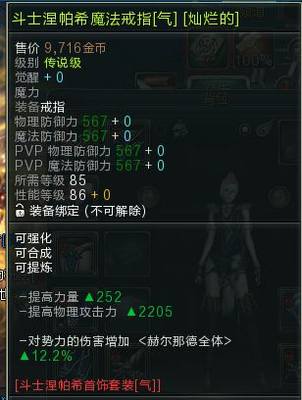 【85斗士涅帕希戒指(气)灿烂的】免洗极品属性 物理职业必备 伤害加成属性高