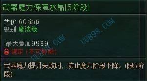 武器魔力保障水晶5阶段2个一起打包,客服代强买家自带金币和强化材料,5上6没问题。1-6都可以使用不掉级