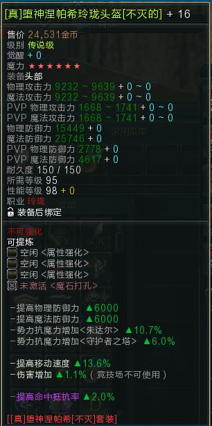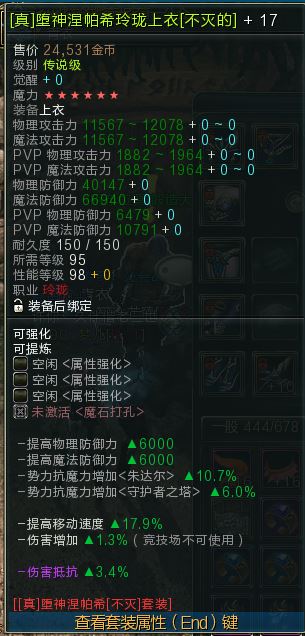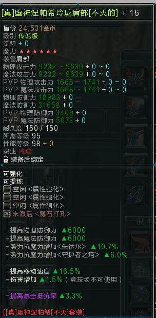 【95(真)堕神涅帕希玲珑防具】4件,16-6星免息极品增伤属性~