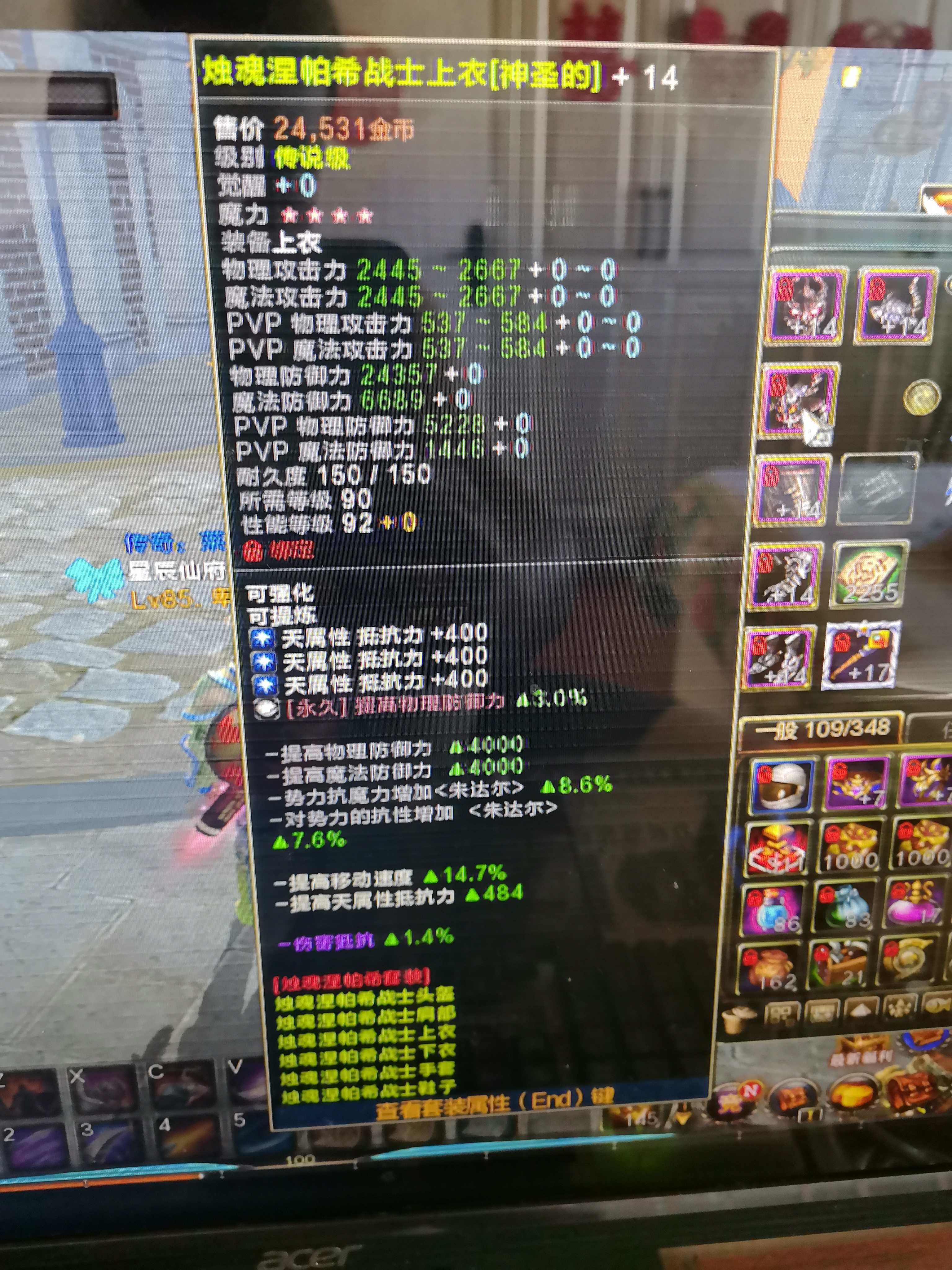 【90神圣防具套+14的 】90+14神圣防具套 战士的