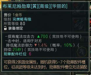 【布莱尼姆勋章黄高级华丽】魔攻700,降防1.4%