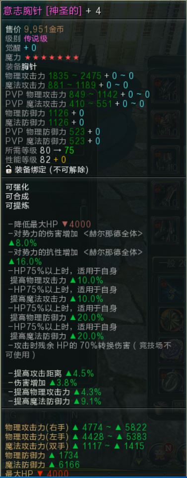 【意志胸针神圣魔力+7物攻4.3】意志胸针(神圣)魔力+7 物攻4.3 增伤3.8