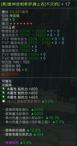【萨满95不灭上衣单件】+17魔力7 包解绑