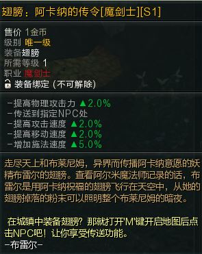 翅膀:阿卡纳的传令【魔剑士】物攻永久翅膀