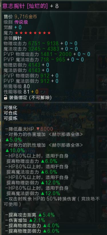 【意志胸针灿烂+8八星满属性4.】物攻满属性4.0