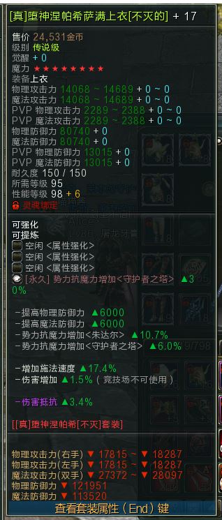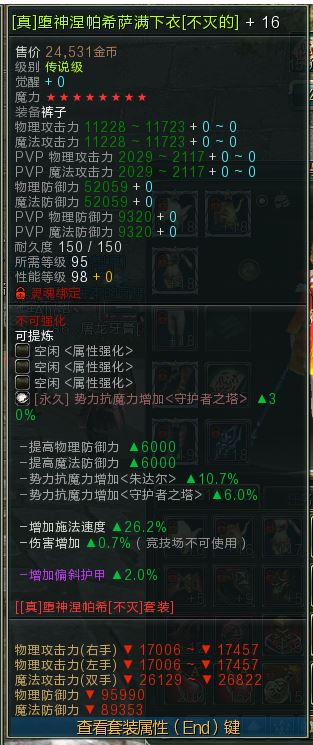 出萨满不灭套,1件+17,5件+16,3件8星,2件7星,1件6星,含永久塔抗魔石3个,全属性30肩膀,魔2手,爆伤8脚!!!全是洗好的高伤害属性!!!加上解绑也比自己做便宜好几百