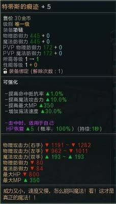 【特蒂斯的痕迹】唯一饰品 增加百分之10魔法攻击 百分之30施法速度