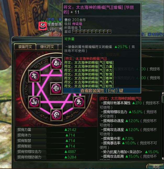 【太古气符文华丽套】脱坑出售一套太古气华丽套,三大件分别+11+12