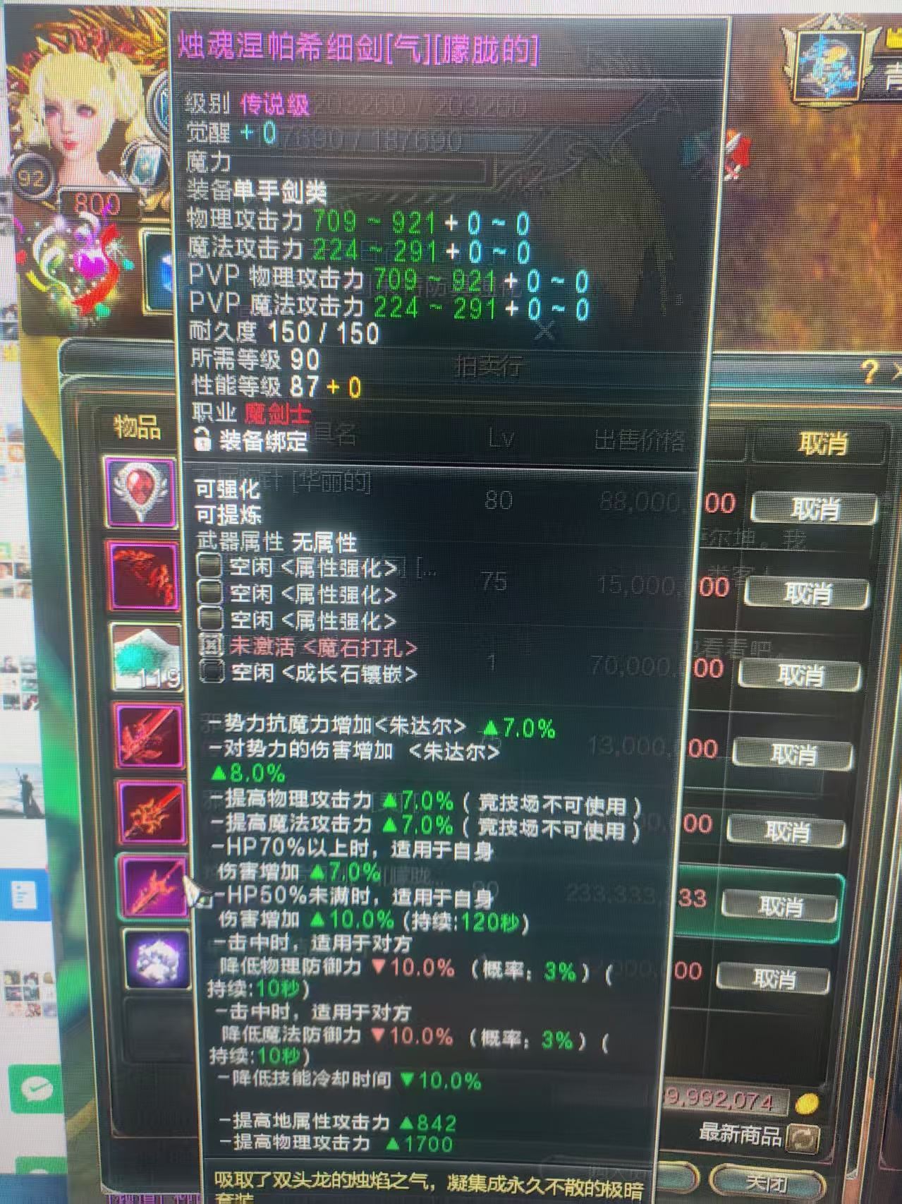 【90细剑(气)】极品白板细剑地属性