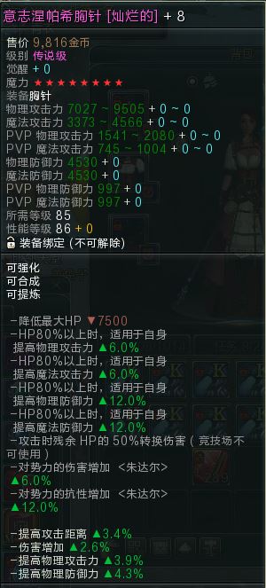 【意志涅帕希胸针灿烂8+8极品】85意志胸针8+8星极品属性