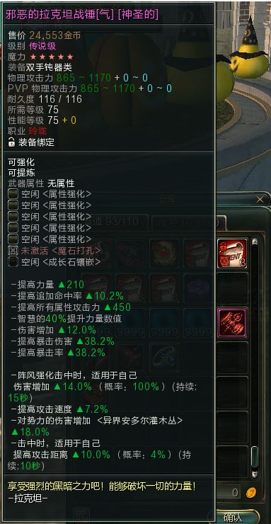 【邪恶的拉克坦战锤神圣的】+18+19+20大佬必备,最后一条属性可洗技能冻结