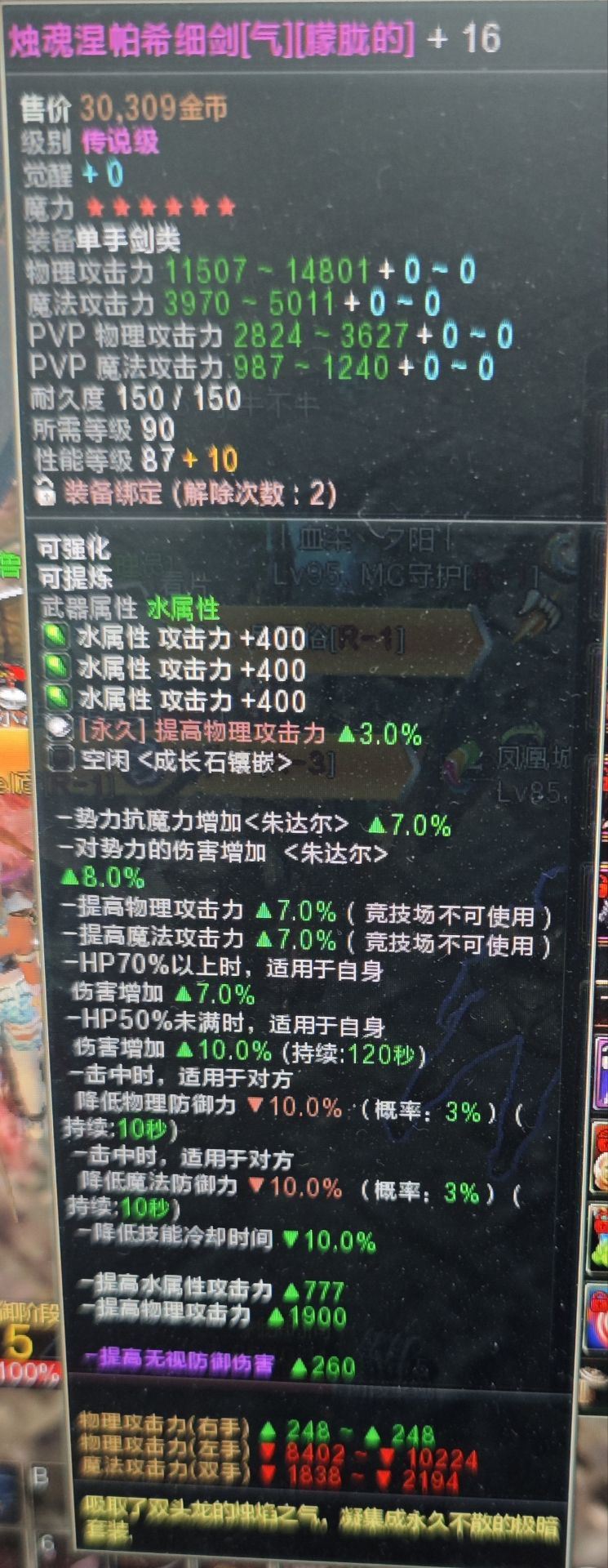 满攻水属性777+400水属性3石头永久物理+3%石头在背包已封印