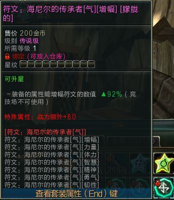 符文:海尼尔的传承者(气)朦胧增幅单件,最强无陨落符文