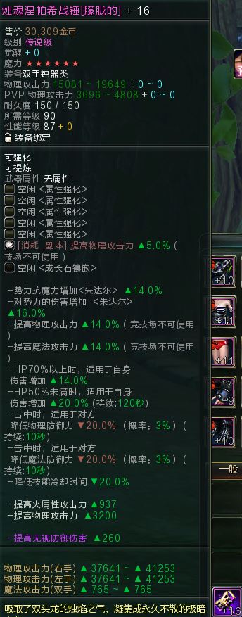 【烛魂涅帕希战锤满属性+16】90锤子+16-6星满属性,丢了
