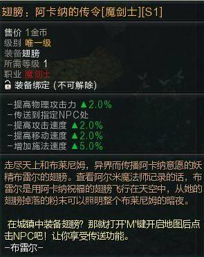 【翅膀:阿卡纳的传令〖魔剑士〗】翅膀:阿卡纳的传令【魔剑士】物攻永久翅膀
