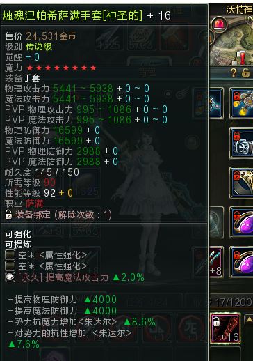 【萨满90+16-8神圣手套】萨满神圣防具90+16-8手套 2+2+2必备