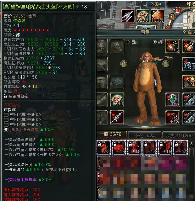 【顶级战士95防具 战士不灭防具】战士95不灭防具一套全部+18-9星全部觉醒