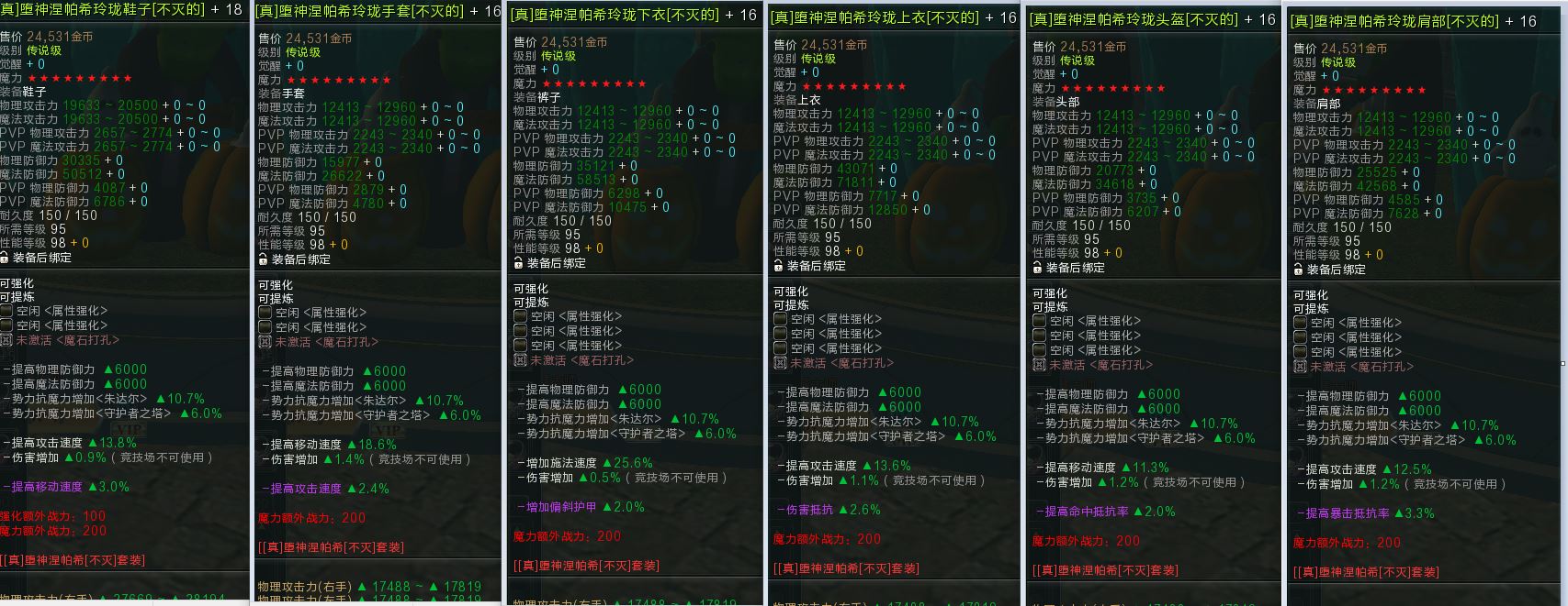 【玲珑95防具玲珑不灭防具一套】全九星+16 鞋子+18已洗好 玲珑95不灭防具