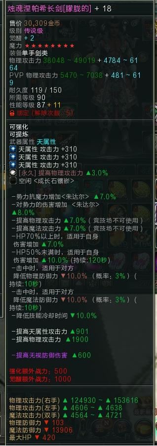 【90战士长剑+18八星】强化18,八星性能11觉醒2,自带蓝色星星特效