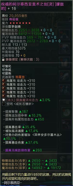 【祝福的阿尔泰西亚奥术之剑】镂刻使70-16-7奥术之剑