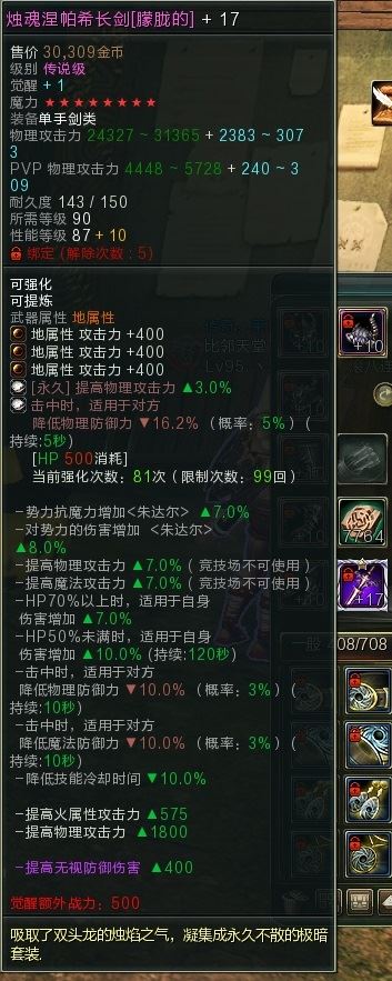 【烛魂涅帕希长剑】90+17+8觉醒1物理1800解绑在我背包
