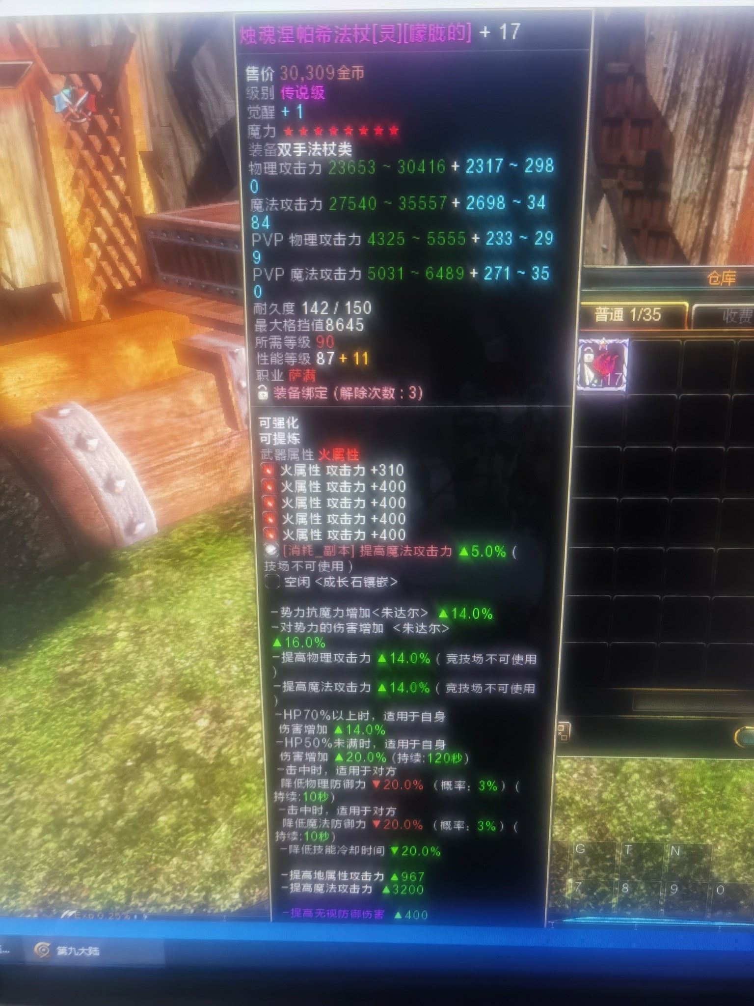 满攻3200,火属性400,性能等级11,8星觉醒1,已经解绑
