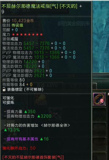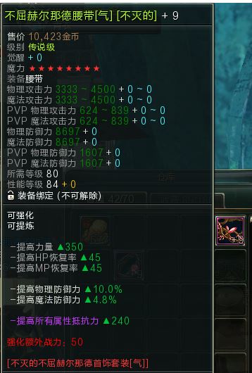 【80不屈赫尔那德腰带+戒指】(气)不灭免洗属性+9 8星 物理职业必备~