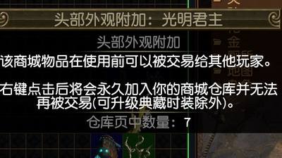 头部外观附加光明君主;头部外观秘法兜帽;武器特效纯净之神;15一个