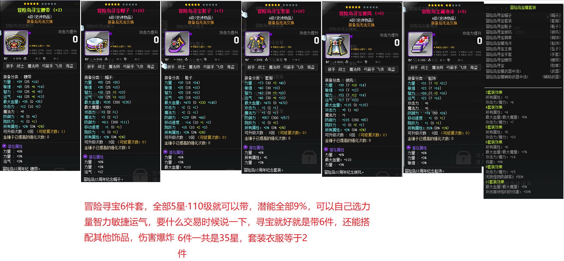 110级可带·5星·冒险岛寻宝套装6件套·一共35星,9%潜能力智运敏任选