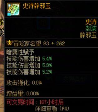 史诗16.4技攻辟邪玉,技攻5.2+5.4+5.8,暗属性攻击,高名望355