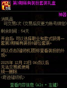 地下城与勇士绝版天空装扮/第3期天空套装交易