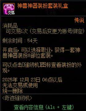 地下城与勇士绝版天空装扮/绝版装扮套装礼盒交易
