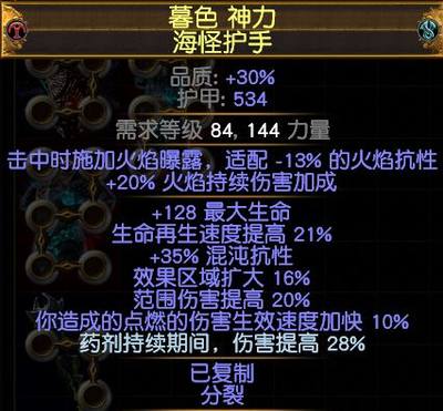 【海怪护手】S28正火镜子手复制件曝露火焰持续生命生命再生混沌抗性