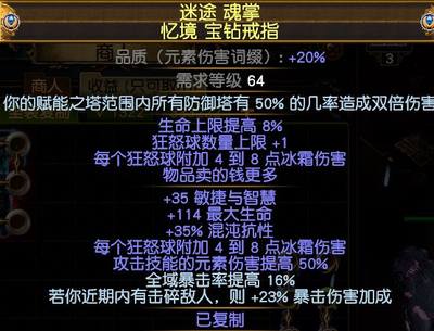 S28狂怒球镜子戒指复制件忆境宝钻防御塔双倍伤生命上限怒球上限狂怒球附加冰敏捷智慧生命混沌抗狂怒球附加攻击元素伤全域暴击率暴击伤加成
