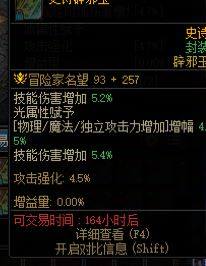 史诗技攻玉5.2+5.4+4.5%物理攻强共约12.6技攻 天龙背包