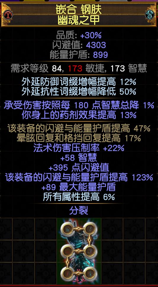 【幽魂之甲】⭐复制品+包镜子⭐900护盾ES+词缀全满⭐智慧+属性%+法术压制⭐