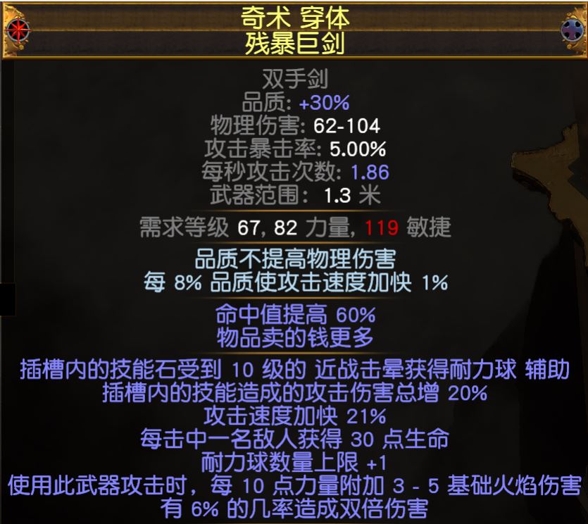【残暴巨剑】⭐复制品⭐20more伤+击晕得球辅助⭐耐力球+力量火伤⭐