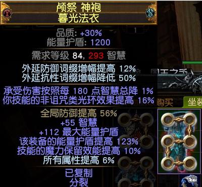 【全局防御⭐暮光法衣】⭐复制品⭐完美词缀⭐1200护盾ES+光环属性%⭐护盾拉满⭐