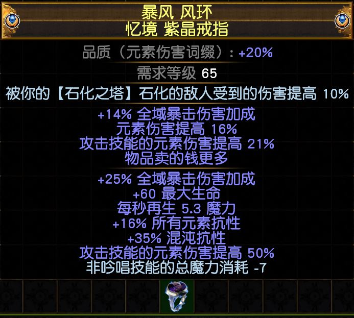 【3忆境戒指⭐赛季最强】⭐复制品⭐包含镜子⭐爆伤+元素伤基底⭐龙卷闪电箭毕业⭐