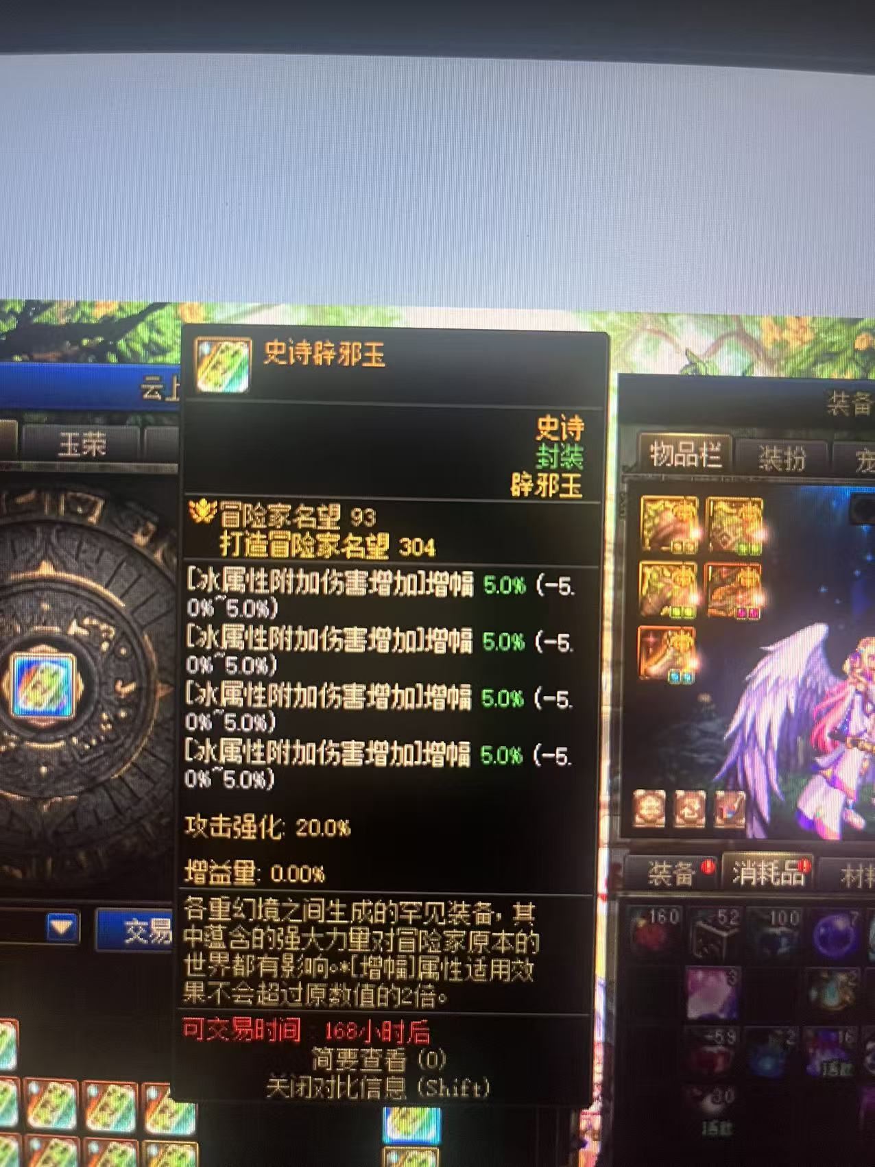史诗辟邪玉,冰属性附加伤害5.0+5.0+5.0+5.0,总20攻击强化,名望397,乱世现货,交易需要加冒险团14天