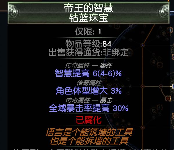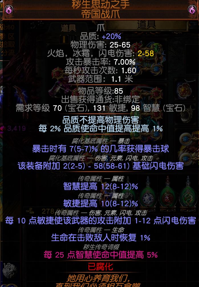 3800+智慧,90全抗,满暴击伤害594,1w+护甲,70物理减少,5w6闪避,86闪避几率,免疫诅咒,免疫元素异常。6耐力球,85王无阶段。买到就是爽到。