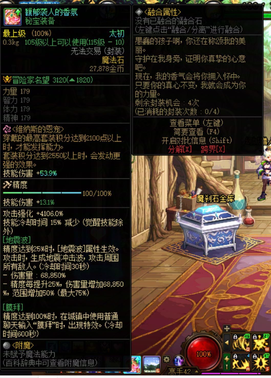 【右槽秘宝魔法石馥郁袭人的香氛】右槽秘宝魔法石 满精炼 馥郁袭人的香氛(秘宝魔法石)【大东网游精品店】