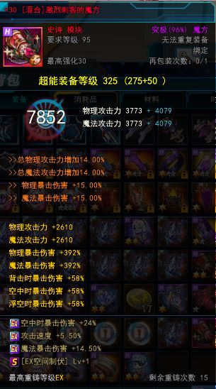 【+30激烈的刺客魔方】EX魔爆攻速空爆 底价返金