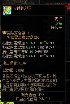 【史诗辟邪玉】5.6+5.2+5.4合计16.2技攻,魔爆+1%,309名望