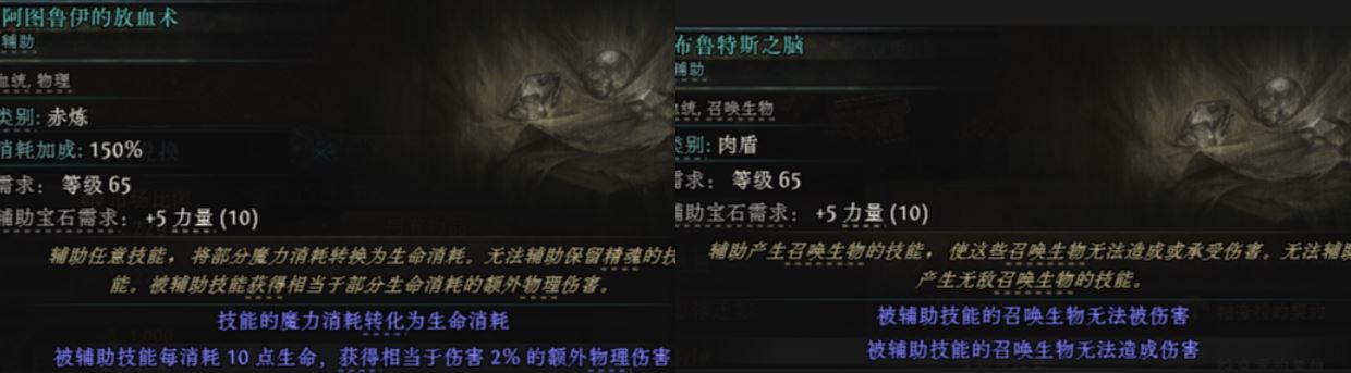 阿图鲁伊的放血术提升大量物理伤害+布鲁特斯之脑召唤无敌技能,毕业技能石,任选1个