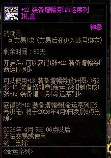 【4月17日前有效】【其他增幅券】【4月17日前有效】【装备增幅券】+12装备增幅卷子 (命运序列)在线发货