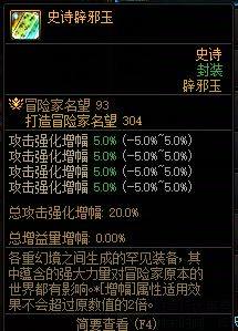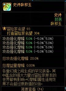 【史诗辟邪玉】攻击强化伤害20%,攻击强化20%,397名望,