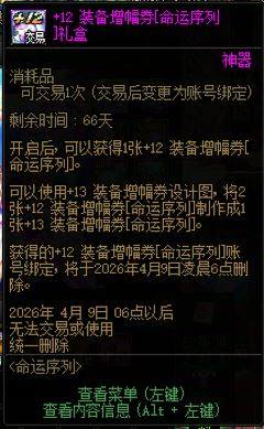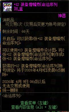 【4月2日前有效】【装备增幅券】+12装备增幅卷【命运序列】